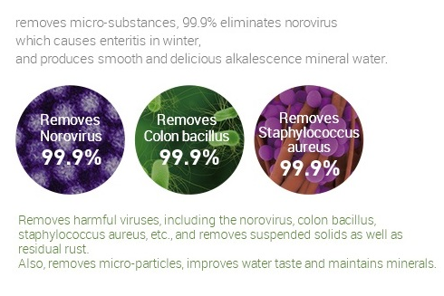 | Filter | 1st filter ~ Sediment Filter (Made in Korea) 2nd filter ~ PRE-Carbon (Made in Korea) 3rd filter ~ Post Carbon Filter (Made in Korea) 4th filter ~ Silver Carbon Filter (Made in Korea) |