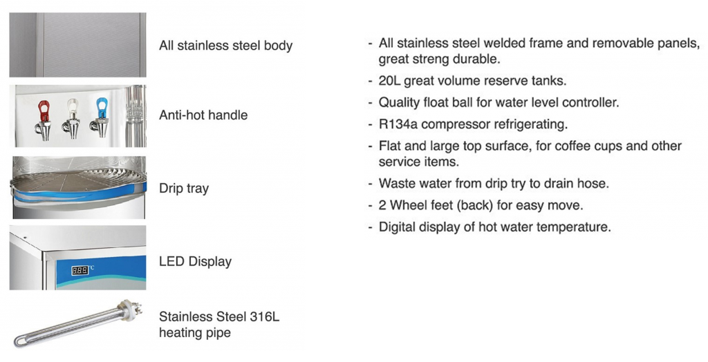 Hot & Cold & Ambient Stainless-Steel Water Cooler (pipe in system)